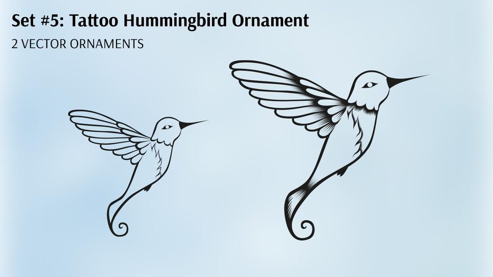 2 variations of a hummingbird drawing, one with more details, and one with fewer details.