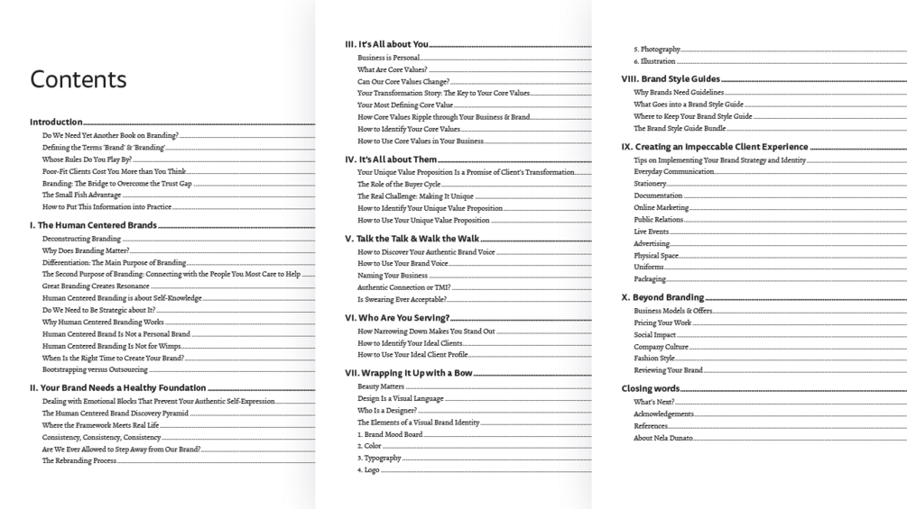 The Human Centered Brand by Nela Dunato is a comprehensive branding book for service based businesses and creatives that helps you grow meaningful relationships with your clients and your audience.